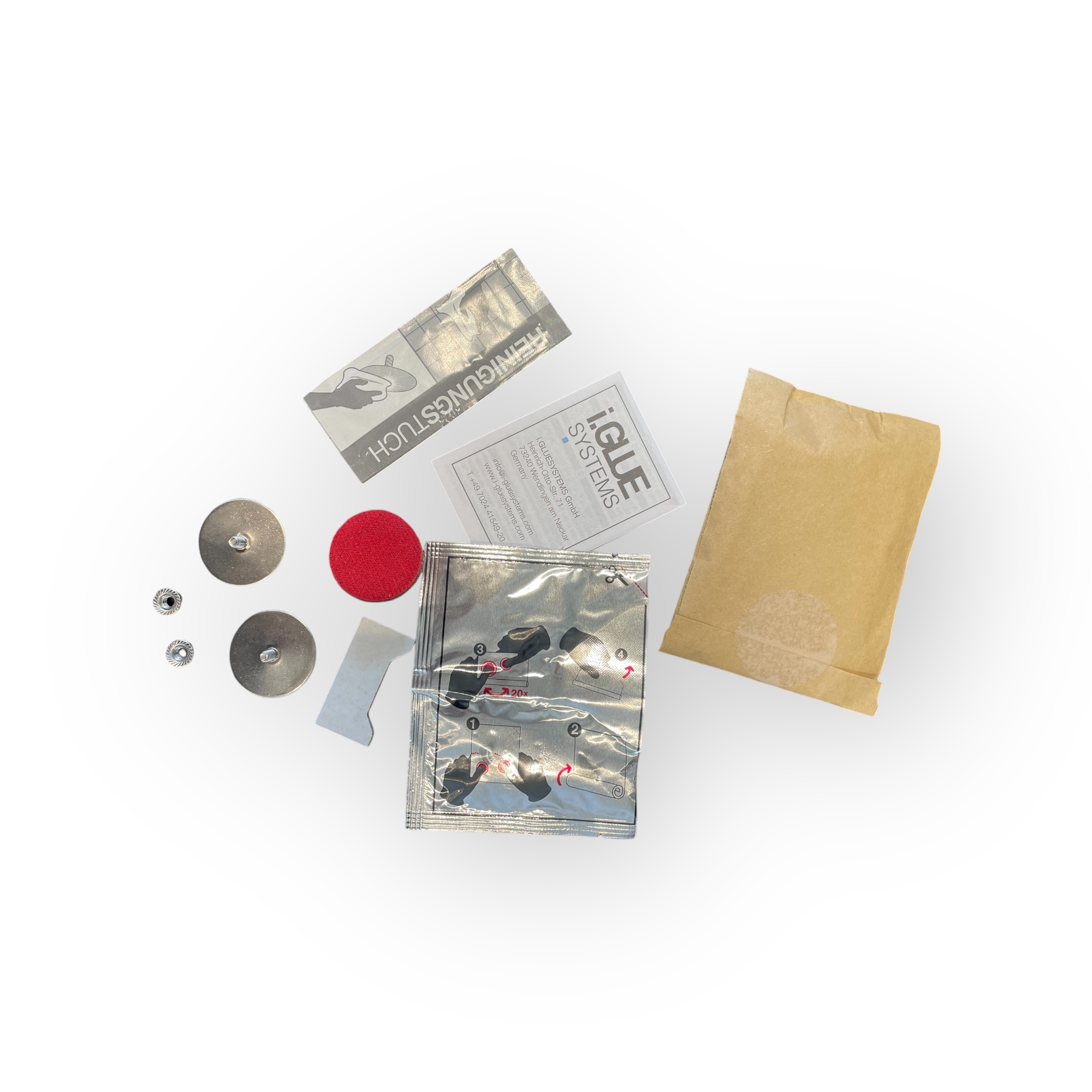 Material: 2x Edelstahl Adapter und Zweikomponentenkleber von i.glue.