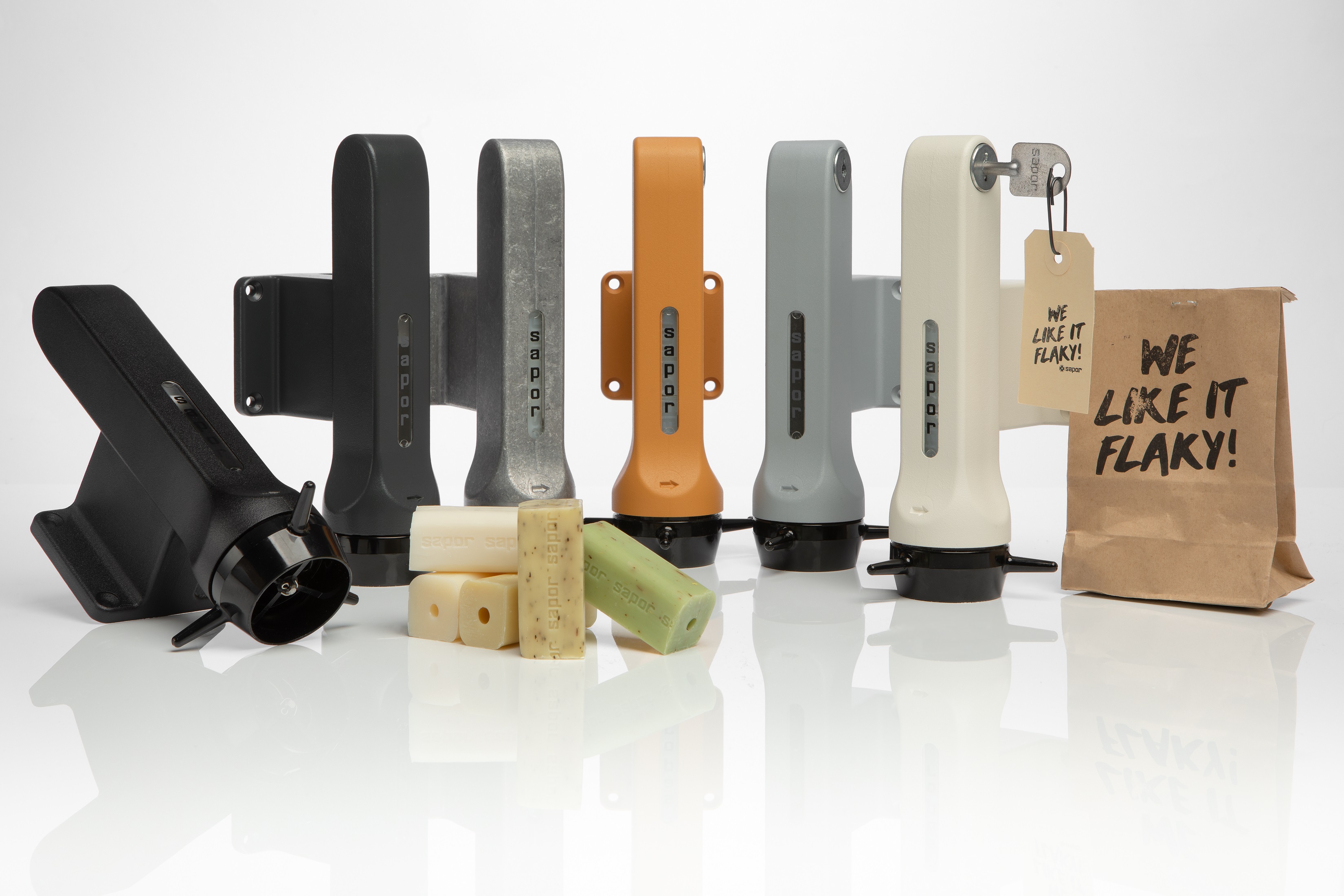 Das sapor® Prinzip bleibt konsequent: Statt flüssiger Seife kommt bei uns feste Feinseife zum Einsatz. Diese wird bei jeder Nutzung frisch in feine Flocken geraspelt – für hygienische, portionierte Abgabe und ein angenehmes, sauberes Gefühl.